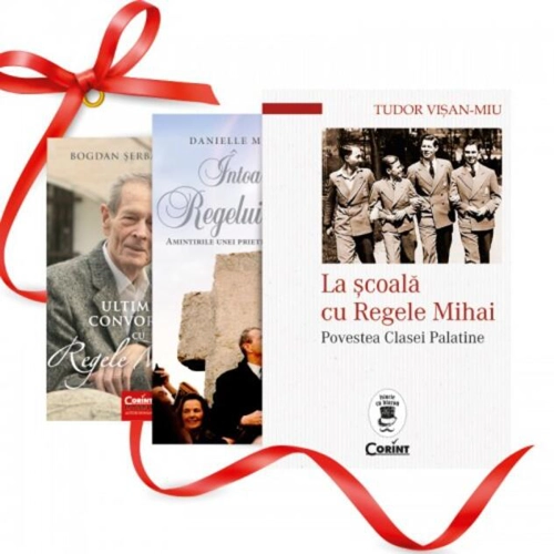 Pachetul conține cărțile: 1. La școală cu Regele Mihai. Povestea Clasei Palatine 2. Întoarcerea Regelui Mihai. Amintirile unei prietene a familiei regale 3. Ultimele convorbiri cu Regele Mihai I Alte titluri pentru BogdanŞerban-Iancu (autor): Romanticii (2023) , Ora Regelui (2014) , Ultimele convorbiri cu Regele Mihai I (2019) , Alte titluri pentru TudorVişan-Miu (autor): La şcoală cu Regele Mihai. Povestea Clasei Palatine (2016) , O viață... Tudor Vișan-Miu în dialog cu Dinu Zamfirescu (2019) , Pachet Istorie cu blazon (4 volume) (2020) , Mareșalii Palatului (2022) , Povestea Trenului Regal (2024) ,