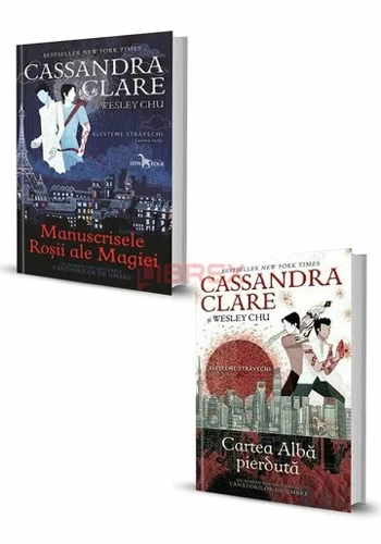 Pachetul Seria Blesteme Stravechi. Set 2 Volume contine urmatoarele: 1. Manuscrisele Rosii Ale Magiei. Seria Blesteme Stravechi, Vol. 1 2. Cartea Alba pierduta. Seria Blesteme Stravechi, Vol. 2 Romane din universul vanatorilor de umbre. Descrierea cartii Manuscrisele Rosii Ale Magiei. Seria Blesteme Stravechi, Vol. 1: Tot ce voia Magnus Bane era o vacanta. O calatorie luxoasa prin Europa impreuna cu Alec Lightwood, vanatorul de umbre care, contrar tuturor asteptarilor, este in sfarsit iubitul sau. Nici nu doreste prea mult Inaltul Magician, batran de secole! Dar abia au ajuns la Paris, cand o veche prietena soseste cu vesti despre un cult ce venereaza demoni, numit Mana Purpurie, si care urmareste sa starneasca haos in lume. Un cult pe care se pare ca insusi Magnus l-a creat cu multi ani in urma, in gluma. Acum, Magnus si Alec trebuie sa strabata Europa in cautarea Mainii Purpurii si a conducatorului sau necunoscut, inainte ca totul sa fie distrus. Si, ca si cum n-ar fi suficient de rau ca escapada lor romantica a fost intrerupta, demonii sunt acum pe urmele lor, iar indragostitilor le e tot mai greu sa deosebeasca prietenii de dusmani. In vreme ce cautarea raspunsurilor devine tot mai dificila pentru ei, Magnus si Alec trebuie sa aiba incredere unul intr-altul mai mult ca niciodata – chiar daca asta inseamna ca fiecare dintre ei sa dezvaluie secrete adanc ingropate. Manuscrisele Rosii ale Magiei, primul volum din seria „Blesteme stravechi”, apartinand autoarei de bestselleruri Cassandra Clare si premiatului scriitor de science-fiction Wesley Chu, este o aventura cu un ritm alert, plina de umor, de magie si (daca demonii inceteaza sa se mai amestece) de iubire, care ofera o perspectiva proaspata asupra lumii vanatorilor de umbre. Descrierea cartii Cartea Alba pierduta. Seria Blesteme Stravechi, Vol. 2: Viața e minunată pentru Magnus Bane și Alec Lightwood. Trăiesc împreună într-o mansardă fabuloasă, fiul lor magician, Max, a început să învețe să meargă, iar străzile din New York sunt liniștite și tăcute – pe cât de liniștite și tăcute pot fi ele vreodată. Asta până în noaptea în care două vechi cunoștințe ale lui Magnus pătrund în apartament și fură Cartea Albă, unul dintre cele mai puternice tomuri de magie existente. Acum, Magnus și Alec se văd nevoiți să renunțe la tot și să încerce să o recupereze. Pentru asta, trebuie să îi urmeze pe hoți în Shanghai, să mobilizeze întăriri care să-i însoțească și să găsească un babysitter pentru Max. În plus, cineva l-a înjunghiat pe Magnus cu o ciudată armă magică, lăsându-i o rană care strălucește, așa că au o îngrijorare în plus. Din fericire, ajutoarele lor sunt Clary, Jace, Isabelle și Simon, proaspăt absolvent al Academiei Vânătorilor de Umbre. În Shanghai, ei află că o amenințare mult mai întunecată îi așteaptă. Magia lui Magnus devine tot mai instabilă, și, pentru că nu pot opri năvala demonilor în oraș, vor trebui să îi urmeze la sursă – tărâmul celor morți. Vor putea ei să oprească pericolul care amenință întreaga lume? Vor reuși să ajungă acasă înainte ca mama lui Alec să nu-i mai poată face față lui Max? Alte carti scrise de Cassandra Clare sunt: Lantul de aur. Seria Ultimele Ore, Vol. 1 Pachet Dispozitive Infernale. Set 3 carti Doamna de la miezul noptii Regina Aerului si a Intunericului