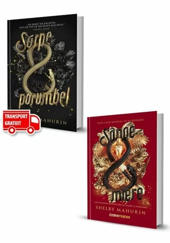 Pachetul Shelby Mahurin. Sarpe si Porumbel. Sange si miere contine: 1. Sange si miere, de Shelby Mahurin, In urma cu doi ani, Louise le Blanc a fugit din clanul ei de vrajitoare, adapostindu-se in orasul Cesarine, renuntand la magie si ducandu-si zilele din ce putea fura. In oras, vrajitoarele ca Lou sunt temute, de aceea sunt vanate si arse pe rug. Ca membru al Vanatorilor, ordin sub egida Bisericii, Reid Diggory si-a trait viata calauzindu-se dupa un singur principiu: pe vrajitoare sa n-o lasi sa traiasca. Dar cand Lou, incoltita, ii intinde o capcana, cei doi sunt siliti la un compromis imposibil – sa se casatoreasca. Lou, care nu-si poate ignora sentimentele din ce in ce mai puternice, totusi neavand cum sa schimbe ceea ce este, trebuie sa faca o alegere. Iar dragostea ne prosteste pe toti. DOI UNITI CA UNUL, PENTRU A SE IUBI, A SE ONORA SAU A ARDE. ODATA PATRUNSI IN LUMEA FEMEILOR PUTERNICE, A MAGIEI NEGRE SI A IUBIRILOR INCREDIBILE DIN ACEST PRIM VOLUM, CITITORII VOR ARDE DE NERABDARE SA-SI CONTINUE PERIPLUL. „Personaje bine realizate si o lume plurivalenta, cu aer frantuzesc, alcatuiesc un fundal consistent, dar centrul de interes al acestui roman fantasy este povestea de dragoste, complicata si adesea fierbinte, dintre Lou si Reid.” — Booklist 2. Sange si miere, de Shelby Mahurin, este al doilea volum al seriei „Sarpe si porumbel”. Pana cand moartea ne va desparti. Continuarea bestsellerului „Sarpe si porumbel”. UNDE MERGI TU, VREAU SĂ MERG ȘI EU Lou și Reid s-au reunit. Dar, după ce au scăpat ca prin urechile acului de pumnalul lui Morgane, acum sunt vânați din toate părțile de clan, de regat și de Biserică. Însă timpul și norocul lor nu țin cu ei. UNDE LOCUIEȘTI TU, VREAU SĂ LOCUIESC ȘI EU Împreună, erau convinși că vor putea depăși orice obstacol. Dar când Morgane îi momește într-un joc letal de-a șoarecele și pisica, cei doi sunt siliți să apeleze la ajutorul lui La Voisin – Regina Vrăjitoarelor Roșii și inamica declarată a clanului lui Lou. CÂT TIMP VOM TRĂI În timp ce Lou descoperă o latură întunecată a magiei, despre care crede ca e necesară pentru a-și proteja soțul și prietenii, Reid își cercetează fără nicio tragere de inimă puterea nou dobândită. Iar cei doi sunt legați unul de celălalt pentru tot restul vieții… DAR MOARTEA NU IARTĂ PE NIMENI. „O continuare uluitoare a lumii magice create de Mahurin în care forța iubirii este asmuțită împotriva nevoii de a-i proteja pe cei dragi. O aventură splendidă!” - JODI PICOULT, autoarea romanului Mici lucruri mărețe „Decadentă și periculoasă, Sânge și miere a fost exact cartea de care aveam nevoie la momentul potrivit. Pleiada de personaje m-a captivat, și ard de nerăbdare să văd ce-i așteaptă în continuare pe acești zurbagii veseli.” - RENÉE AHDIEH, autoarea romanului Urgia și zorile