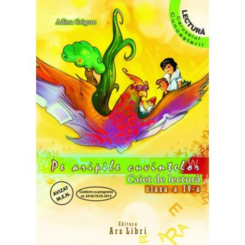 AVIZAT OM 3022/ 08. 01. 2018 Auxiliar didactic de o deosebita importanta pentru elevi si cadre didactice, in vederea realizarii unor ore de lectura reusite. Oferind planificarea calendaristica a materiei, liste cu lecturi accesibile elevilor de clasa a IV-a, textele literare instructive si captivante, caietul asigura dezvoltarea continua a competentelor generale si specifice de comunicare. Fisele de literatura, prin structura lor itemica, aprofundeaza continutul textelor si asigura intelegerea mesajului instructiv – educativ. Fara un astfel de caiet, nici elevii, nici profesorii nu vor reusi sa ajunga “pe aripile cuvintelor” generatoare de satisfactii artistice si bucurii autentice.
