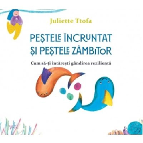 O fetita hraneste doi pesti: unul albastru zambitor si unul rosu incruntat. Cu cat il hraneste mai mult pe cel rosu, iazul ei se umple de pesti rosii, tot mai mari si mai incruntati. Fata isi da seama ca, daca il hraneste pe pestele albastru si il ignora pe cel rosu, pestele albastru – starea ei de bine – va prospera. Aceasta poveste terapeutica ii invata pe copii despre importanta gandirii echilibrate si importanta faptului de a nu starui prea mult asupra gandurilor negative. Aceasta carte, dar si alte 6 sapte carti de povesti complet ilustrate, fiecare dintre ele axandu-se pe un aspect diferit al rezilientei emotionale, poate fi utilizat impreuna cu cartea-ghid „Rezilienta emotionala a copiilor”. Ghidul care ofera un cadru si strategii eficiente pentru a sprijini rezilienta emotionala a copiilor, pe baza modelului Curcubeul rezilientei, elaborat de Juliette Ttofa. Seria cuprinde povestile: Baiatul care dorea sa priveasca soarele. Cum sa ai grija de tine Balonul este tulburat. Cum sa scapi de stres Barcuta instelata. Cum sa faci fata pierderilor Fetita si ecoul. Cum sa te imprietenesti Pestele incruntat si pestele zambitor. Cum sa-ti intaresti gandirea rezilienta Vietatile din sufletul tau. Cum sa-ti cresti rezilienta emotionala Ziua in care a cazut cerul. Cum sa-ti recapeti echilibrul