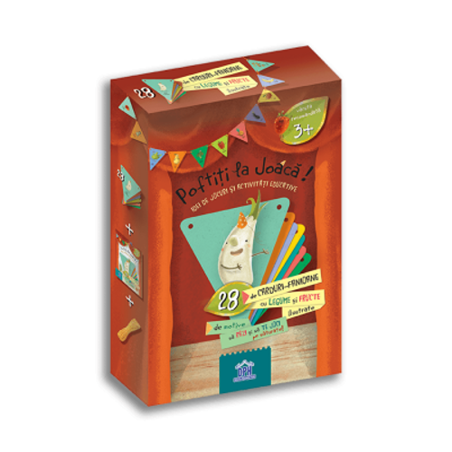 Micul Catel de Usturoi, eroul cartii „Poftiti la Bal!”, te invita la joaca alaturi de prietenii din gradina si colegii lui de platou. Pachetul contine: - 28 de carduri-fanioane cu fructe si legume ilustrate - Un snur pentru ghirlanda - Brosura „Poftiti la Joaca! Idei de jocuri si activitati educative” Joaca-te pe saturate!!! Fie ca alegeti sa faceti ghirlande, fie ca folositi cardurile pentru jocuri si activitati, acest pachet este un foarte bun suport pentru parinti si educatori pentru a-i „imprieteni” pe copii cu fructele si legumele, a-i familiariza cu denumirile lor, a-i apropia de natura si a-i invita sa o exploreze. Si, nu in ultimul rand, pentru a-i incuraja sa se hraneasca sanatos. Pofta buna la joaca!