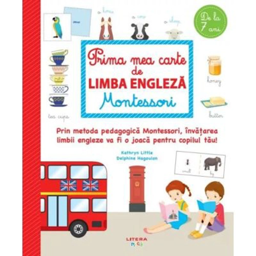 Cartea Montessori are peste 100 de activitǎti diverse care ii vor face pe copiii de 7 ani sǎ-si insuseascǎ limba englezǎ in mod gradual. Aceasta metoda a fost elaborata de doua educatoare Montessori atestate cu diploma AMI (Asociatia Internationala Montessori), care lucreaza cu grupe de copii in varsta de 3-6 ani: Kathryne Little, fondatoarea scolilor Little British, cu predare in engleza, si Delphine Kagoulon, directoarea programului de clase bilingve Montessori. Explorarea prin joaca a unor captivante subiecte de actualitate, precum lumea animalelor, ecologia, prepararea hranei, sistemul solar etc. ii vor permite copilului sa invete sa-si construiasca primele propozitii in engleza si sa utilizeze un vocabular din ce in ce mai bogat. Aceasta metoda permite copilului sa construiasca propozitii inca de la primele pagini (I+verb) si il incurajeaza sa se exprime rapid in engleza. Va putea apoi formula propozitii mai complexe (subiect + predicat + complement). Prin metoda pedagogica Montessori, invatarea limbii engleze va fi o joaca pentru copilul tau!