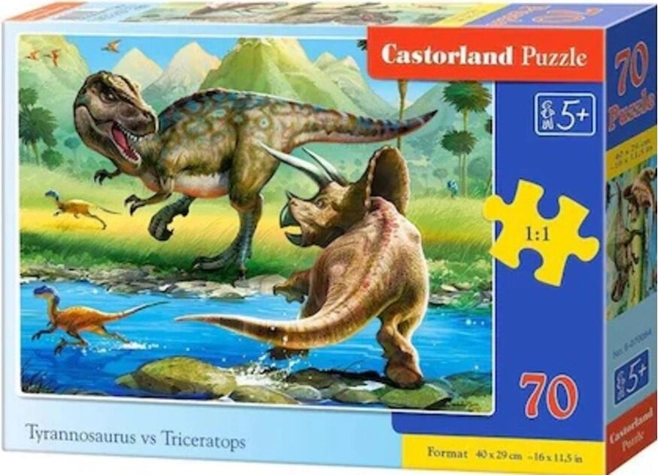 Puzzle 70 piese „Tyrannosaurus vs Triceratops”