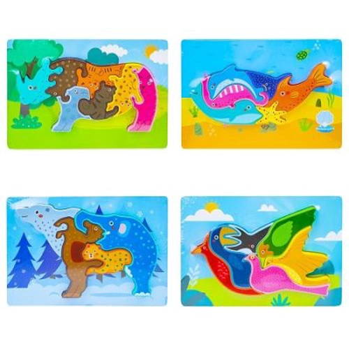 Puzzle-urile au un farmec aparte, acest puzzle fiind o varianta din lemn potrivita pentru invatarea primelor notiuni despre jocul de puzzle, un joc clasic ce dezvolta gandirea, imaginatia si logica. Caracteristici: - Puzzle-ul incastru din lemn, 3D, tip plansa are diverse imagini cu animale salbatice, animale marine sau pasari. - Numarul de piese din care se asambleaza puzzle-ul variaza in functie de model, de la 4 piese la 8 piese. - Piesele sunt viu colorate, vopseaua folosita fiind non toxica. - Jucaria stimuleaza abilitatile de potrivire, recunoastere vizuala, invatarea culorilor si a formelor, fiind o jucarie educativa. Dezvolta atentia, memoria, concentrarea, coordonarea ochi-mana si precizia. - Produsul este ambalat in folie. Avertizare! Produsul este nou si comercializat in ambalajul original al producatorului. Imaginile de pe site au caracter informativ. Ambalajul trebuie indepartat, recuperat si aruncat de catre un adult inainte de a se da spre utilizare copilului. Nu lasati ambalajele produselor la indemana copiilor. Se recomanda utilizarea produsului sub supravegherea unui adult. Produsul poate contine piese mici care se pot inghiti sau inhala de cei mici, existand pericolul de sufocare sau nu este potrivita copiilor mai mici de 3 ani. Pastrati instructiunile si etichetele pentru referinte viitoare. Pastrati produsul departe de foc, si nu il lasati in preajma temperaturilor ridicate si a umiditatii. Datorita masurarii manuale a produsului poate exista o diferenta minora fata de dimensiunea reala a produsului.