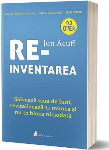 Reinventarea / Do over de Jon Acuff este o carte care împrumută puțin din caracterul autorului său: este simpatică. O citești cu plăcere, pentru că este povestită cu har, unde mai pui că te învață niște trucuri care îți vor fi utile nu numai în carieră, ci și în viață în general. Iar dacă nu te bate gândul să faci nicio schimbare în carieră prea curând, cu siguranță că, în viața fiecăruia dintre noi este, oricând, loc de mai bine. „Trăim pentru zilele de weekend fiindcă am acceptat că zilele săptămânii sunt echivalente cu moartea visurilor noastre.” Cartea lui Acuff pleacă de la ideea că există prea mulți oameni care nu se bucură de duminici, din simplul motiv că îi sperie ideea de luni, ziua în care se vor întoarce la jobul pe care îl urăsc, sau dacă nu îl urăsc, se gândesc cel puțin că nu este ceea ce vor ei să facă în viață. REINVENTAREA lui Acuff devine astfel acel „șut în fund” de care au nevoie toți cei care se complac în a fi nefericiți făcând ceea ce nu le place, și acel pas înainte spre cariera potrivită, generat de precedentul „șut în fund”. Acuff te ia frumos de mânuță și te ajută să faci primul pas înainte, învățându-te niște lucruri pe care să le folosești în drumul tău spre cariera mult visată. Vei învăța mai întâi ce este Contul de Economii al Carierei și cum să îl folosești. Alte titluri pentru JonAcuff (autor): Finiș. Șlefuiește-ți talentul de a duce lucrurile până la capăt (2021) , Finiș. Șlefuiește-ți talentul de a duce lucrurile până la capăt CD (2021) ,