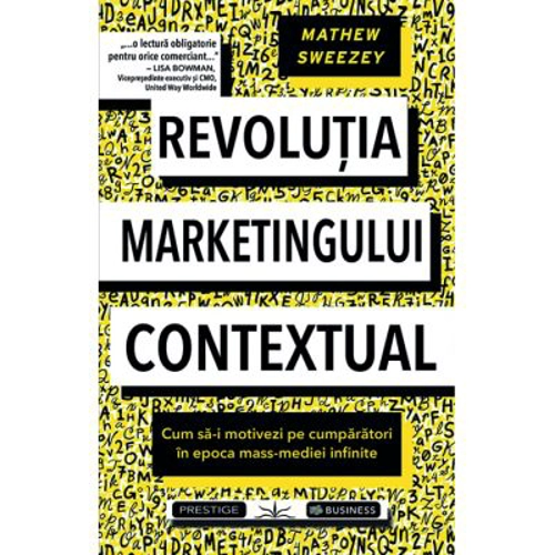 „O analiza profunda, actualizata si practica despre cum functioneaza marketingul in prezent.” — SETH GODIN, autor, This is Marketing „Daca sunteti in cautarea unei carti ce contine diagrame cu rate de conversie, palnii de vanzare si tabele cu rentabilitatea investitiilor, atunci nu ati gasit ceea ce cautati. Sweezey revine la aspectele asupra carora ar fi trebuit sa ne concentram pana acum: comportamentul uman, de ce consumatorii iau deciziile pe care le iau si de ce contextul conteaza mai mult ca niciodata.” — GEOFFREY COLON, Seful departamentului Brand Studio, Microsoft Advertising; autor, Disruptive Marketing „Prin Revolutia marketingului contextual, Mathew Sweezey ofera o harta a modului in care putem sa-i deservim pe consumatorii curenti inundati de media, in momentele care conteaza. Aceasta carte ar tre¬bui sa fie o lectura obligatorie pentru brandurile din categoria de top, scolile de business si membrii conducerii superioare ai companiilor de pretutindeni. Atat de fundamentala este!” — JEFFREY K. ROHRS, autor, Audience „Noii lideri de piata nu vor fi comercianti sau marci, ci clienti. Comerciantii care vor sa urmeze exemplul clientilor lor trebuie sa inceapa cu aceasta carte.” — DOC SEARLS, autor, The Intention Economy; coautor, The Cluetrain Manifesto „Daca recunoasteti si acceptati ca marketingul s-a transformat, ati par¬curs deja jumatate din drum. Aceasta carte va va ajuta sa parcurgeti restul drumului, sprijinindu-va sa decideti ce sa faceti in aceasta privinta. Sfaturi practice de la un practicant din lumea reala.” — DHARMESH SHAH, cofondator si CTO, HubSpot „Sweezey ofera un set de strategii detaliate despre cum sa faci mar¬keting modern, de la modul in care brandul si publicitatea trebuie sa se schimbe in era digitala pana la integrarea profunda a tehnologiei si a datelor care sa permita o scalare. Cumparati cate un exemplar pentru fiecare membru al echipei de marketing pentru a va trans¬forma relatia cu clientii.” — CHARLENE LI, fondator si analist senior, Altimeter, Prophet Company; autor de bestseller conform New York Times, The Disruption Mindset INTR-O LUME CARACTERIZATA DE ZGOMOTUL NELIMITAT AL MASS-MEDIEI, OARE CUM AR PUTEA AFACERILE SA AJUNGA LA CLIENTI? PRIN CONTEXT. Suntem in mijlocul unei ample revolutii media. Pentru prima data in istorie, oamenii obisnuiti din intreaga lume au puterea de a crea, distribui si consuma continut; si asta imediat, de oriunde s-ar afla, folosindu-si dispozitivele. Cresterea masiva in ceea ce priveste „zgomotul” creat de acesti consumatori si de dispozitivele lor creeaza o situatie complet noua ce face ca marketingul conventional sa para invechit. Dar chiar si asa, nenumarate companii si structuri de marketing continua sa se bazeze pe modelele traditionale, considerand ca actiunile lor vor domina clientii. Si nu fac altceva decat sa se insele. In aceasta carte, deopotriva provocatoare si practica, Mathew Sweezey, expert Salesforce, subli¬niaza intr-un mod indraznet noua era a „mass-mediei infinite” si pune o intrebare inteleapta: Intr-o lume in transformare, in care clientii isi construiesc propriile experiente, care este cheia de a trece peste acest obstacol si de a-i motiva sa cumpere? Este contextul - legatura stransa dintre dorintele individuale imediate ale consumatorului si experientele pe care un brand le creeaza pentru a le indeplini. Bazandu-se pe cercetari noi si analize privind psihologia consumatorului, Sweezey defineste cinci elemente-cheie ale contextului. Experientele clientilor trebuie sa fie: • Disponibile: Cum sa ajuti oamenii sa obtina valoarea pe care o cauta in acel moment. • Permise: Cum sa le oferi oamenilor ceea ce au cerut, in conditiile lor. • Personale: Trecerea de la cat de personala este o experienta la cat de personal o poti livra. • Autentice: Cum sa combini vocea, empatia si conventiile brandului. • Practice: Cum sa creezi o legatura puternica cu brandul, dincolo de produs. MATHEW SWEEZEY foloseste exemple concrete pentru a sublinia un nou model de marketing, folosit in egala masura de brandurile mari si mici. Cartea cuprinde si o parte practica, asemenea unui manual pentru marketingul bazat pe context. Revolutia marketingului contextual va schimba pentru totdeauna modul in care gandesti despre scopul si aplicarea marketingului. Sweezey este Directorul Departamentului de Marketing al Salesforce. Cercetator, cugetator, cu numeroase premii la activ, dar si scriitor apreciat, munca lui apare in publicatii de top ca AdAge, Forbes, Brand Quarterly, The Economist si The Observer. Este autorul Marketing Automation for Dum mies. Tine conferinte in intreaga lume si lucreaza cu cele mai mari si res¬pectate branduri de pe mapamond, incluzand UPS, Home Depot, AT&T si Dell.