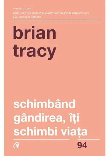 DESCOPERĂ REGULILE SUCCESULUI ÎN AFACERI ŞI ÎN VIAŢĂ! Schimbând gândirea, îţi schimbi viaţa prezintă un sistem clar şi concis menit să vă dezvăluie structura mentală necesară pentru a avea succesul dorit pe fiecare plan al vieţii. Brian Tracy se axează îndeosebi pe importanţa fixării scopurilor, pe disciplina gândirii şi pe dorinţa de a reuşi în pofida oricărui obstacol. Cele douăsprezece principii descrise în carte sunt menite să ajute pe oricine porneşte pe drumul împlinirii totale atât în viaţa personală, cât şi în cea profesională. Autorul este unul dintre cei mai cunoscuţi oratori profesionişti şi o personalitate în lumea afacerilor de astăzi. Brian Tracy deţine funcţiile de chairman şi CEO la Brian Tracy International, o companie specializată în instruirea şi dezvoltarea persoanelor şi a organizaţiilor. E preşedintele Universităţii Brian Tracy şi ocupă poziţia de Chief Learning Officer al iLearning Global.com. Inainte de a-şi fonda propriile companii, a avut cariere de succes în marketing şi vânzări, investiţii, proprietăţi imobiliare, consultanţă în management şi alte câteva domenii conexe. A fost consultant pentru mai mult de 1 000 de companii şi a vorbit în faţa a peste 4 000 000 de oameni, în cadrul a peste 4 000 de conferinţe şi seminarii, desfăşurate pe tot cuprinsul Statelor Unite, în Canada, precum şi în alte 40 de ţări. În calitate de orator apreciat în întreaga lume, Tracy îşi susţine discursurile în faţa a peste 250 000 de ascultători anual. Seminariile sale vizează dezvoltarea personală şi profesională şi sunt structurate pe teme precum leadership, vânzări, stimă de sine, obiective, strategie, creativitate şi psihologia succesului, aceste evenimente desfăşurându-se în faţa multor persoane cu funcţii executive provenind din cele mai importante corporaţii americane. Are o experienţă profesională de 30 de ani în domenii precum economia, istoria, afacerile, filozofia şi psihologia. A călătorit şi a lucrat în peste 80 de ţări de pe toate continentele şi cunoaşte patru limbi. Este autorul a peste 45 de cărţi care au devenit bestseller şi care au fost traduse în zeci de limbi. A elaborat peste 300 de programe de învăţare audio şi video, care, de asemenea, au fost traduse în mai multe limbi.