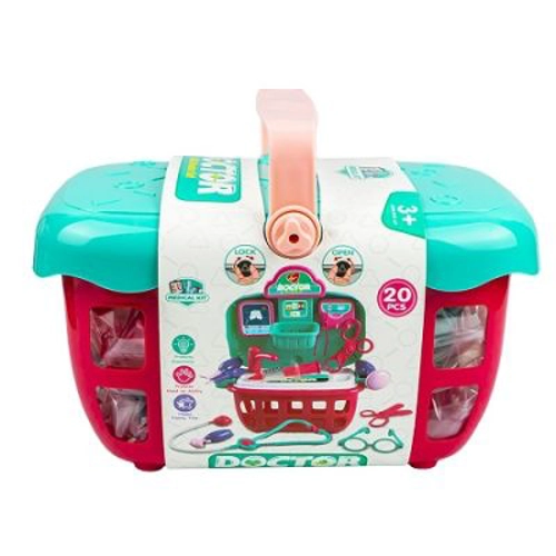 Exploreaza lumea medicinei cu acest set medical de joaca ambalat in cosulet. Jocul permite copiilor familiarizarea cu domeniul medical, acest lucru ducand la ameliorarea anxietatii copiilor vis-a-vis de vizitele la doctor. Caracteristici: - Setul contine cosuletul cu capac care prin atasarea a 8 piese se transforma in masa cu etajera si chiuveta pentru cabinetul medical si o multime de accesorii: seringa, stetoscop, pensa, pensa foarfeca, ochelari, foarfeca, ciocanel, termometru, apasator lincual, otoscop si 1 folie cu autocolante. - Seringa are piston care revine in pozitia initiala dupa ce este apasat. - Termometru are o rotita in partea laterala. - Pentru a detasa capacul cosuletului este necesara rasucirea rotitei de siguranta de la baza manerului. - Datorita modului de ambalare in cosulet jucaria este usor transportabila. - Jocul are un efect pozitiv asupra dezvoltarii copilului, a abilitatilor manuale, creativitivitatii si de asemenea, imbunatateste cooperarea in grup si deprinderile sociale si de integrare atunci cand joaca se desfasoara impreuna cu prietenii. - Produsul este confecționat din plastic si material textil de calitate, non toxice. Dimensiune cosulet: 23. 5x16. 5x15. 7 cm Dimensiune masa cu etajera:: 36x27. 5x16. 5 cm Avertizare! Produsul este nou si comercializat in ambalajul original al producatorului. Imaginile de pe acest site au caracter informativ. Ambalajul trebuie indepartat, recuperat si aruncat de catre un adult inainte de a se da spre utilizare copilului. Nu lasati ambalajele produselor la indemana copiilor. Se recomanda utilizarea produsului sub supravegherea unui adult. Produsul poate contine piese mici care se pot inghiti sau inhala de cei mici, existand pericolul de sufocare sau nu este potrivita copiilor mai mici de 3 ani. Pastrati instructiunile si etichetele pentru referinte viitoare. Pastrati produsul departe de foc, si nu il lasati in preajma temperaturilor ridicate si a umiditatii. Datorita masurarii manuale a produsului poate exista o diferenta minora fata de dimensiunea reala a produsului.