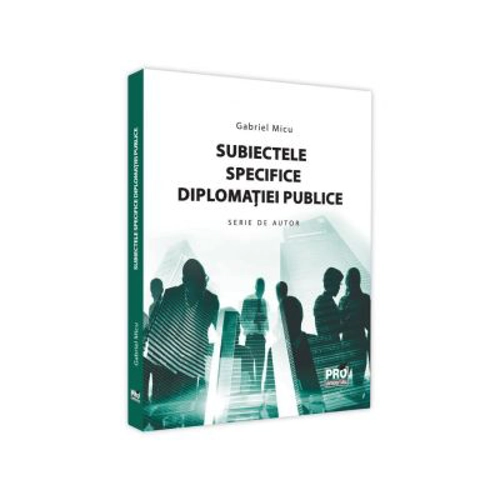 Subiectele specifice diplomatiei publice este lucrarea dedicata cercetarii evolutiilor, inregistrate in practica diplomatica din era globalizarii, marcata de profunde transformari socio-politice, care au efecte notabile asupra modului in care statul si oficialii guvernamentali, se raporteaza la cetateni, la fiinta umana in general. In aceasta lucrare autorul analizeaza actorii specifici diplomatiei publice pe care ii examineaza dintr-o perspectiva holistica, in care imbina abordarile istorice cu cele politice si cu cele sociale. Ceea ce constituie un element important si deosebit de util pentru cititor este maniera comparativa in care sunt prezentate opinia publica si societatea civila, oferind multiple puncte de convergenta ale celor doua concepte, dar si aspecte care le individualizeaza. Totodata cele doua paliere de analiza, interna si externa, sunt de natura sa ofere o imagine completa a fiecaruia dintre cele doua concepte, evidentiindu-se in ambele cazuri diferentele specifice determinate de nivelul de analiza.