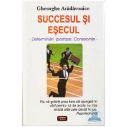 Succesul si esecul - Gheorghe Aradavoaice Cu gandul la cei tineri, aflati la inceput de cariera si pornind de la premisa ca orice actiune pentru a reusi presupune un scop, mijloace si forte, responsabilitati si termene, cartea de fata cuprinde unele concluzii si invataminte, metode si tehnici de obtinere a succesului si de prevenire a esecului. Sunt puse in evidenta conotatiile celor doua concepte de baza, determinarile si impactul lor, profilul psiho-social al omului de succes si al celui care rateaza, unele directii de actiune pentru a preveni esecul si a crea ambianta necesara muncii de calitate. Cititorii sunt invitati sa examineze cele zece fundamente ale succesului, sa inteleaga necesitatea promovarii lor, dar si cauzele esecului, modalitatile prin care se poate preveni, faptul ca orice activitate trebuie sa se intemeieze pe principii si norme morale.