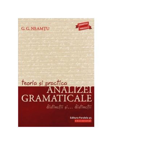 Specialist in disciplina Limba romana contemporana (morfologie si sintaxa – teorie si analiza) si profesor universitar doctor emerit la Departamentul de Limba romana si lingvistica generala al Facultatii de Litere a Universitatii „Babes-Bolyai” din Cluj-Napoca, G. G. NEAMTU este un nume de referinta al scolii de gramatica romanesti, fiind prezent cu numeroase studii si articole de specialitate in reviste ca: Limba romana, Studii si cercetari lingvistice, Studia Universitatis „Babes-Bolyai”, Philologia, Dacoromania, Excelsior, Perspective. De acelasi autor: Predicatul in limba romana. O reconsiderare a predicatului nominal, Bucuresti, Editura Stiintifica si Enciclopedica, 1986; Elemente de analiza gramaticala. 99 de confuzii/distinctii, Bucuresti, Editura Stiintifica si Enciclopedica, 1989; Teoria si practica analizei gramaticale. Distinctii si… distinctii [editia I], Cluj-Napoca, Editura Excelsior, 1999; Studii si articole gramaticale, Cluj-Napoca, Editura Napoca Nova, 2014. Lucrarea de fata este un excelent compendiu de gramatica in termenii distinctie/confuzie, corect/incorect, pornind de la premisa ca insusi faptul de a sti ce cu ce si mai ales de ce se confunda constituie, firesc, un pas important spre a nu mai confunda! Autorul face cat se poate de explicit rationamentul care ar trebui sa stea la baza unei analize gramaticale corecte, punand la dispozitia studentilor si specialistilor o carte menita sa elimine multe dintre dificultatile analizei gramaticale, in cadrul unui algoritm general acceptat ori in prelungirea acestuia, sa clarifice multe dintre controversele gramaticale si sa ofere noi posibilitati de interpretare. O carte de referinta in toate bibliografiile de specialitate!