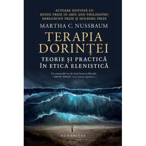 AUTOARE DISTINSA CU KYOTO PRIZE IN ARTS AND PHILOSOPHY, BERGGRUEN PRIZE SI HOLBERG PRIZE „Aristotel, Epicur, Lucretiu, Cicero, Seneca – cu totii au asumat, in moduri diferite, o agenda terapeutica, socotind ca numai cultivand de-a lungul intregii vieti arta argumentarii si respectul pentru ratiune putem obtine lucrurile bune la care nazuim… Ideea unei filozofii practice si pline de compasiune – cultivata de dragul oamenilor, preocupata de cele mai profunde nevoi si dileme ale lor, in intentia de a-i scapa de suferinta si de a-i ajuta sa prospere —, aceasta idee face ca studiul eticii elenistice sa fie captivant pentru un filozof interesat de legatura filozofiei cu lumea. Nutresc speranta ca aceasta carte, deschizand intreaga tematica a argumentarii filozofice terapeutice privitoare la emotiile si pasiunile din viata oricarui om (iubire, frica, manie, mila etc.), va aduce roade bogate.“ — MARTHA C. NUSSBAUM „Deopotriva inteleapta si spirituala, critica si empatica, socratica si nu lipsita de umor, cartea se dovedeste un ghid literar extraordinar de atasant. Un bun sfetnic pentru viata.“ — PETER GREEN, New Republic „Putine carti din modernitate au contribuit atat de mult precum studiul Marthei C. Nussbaum la revalorizarea filozofiei elenistice. Captivanta si scrisa cu admirabila elocinta, Terapia dorintei ne incanta cu pasaje intregi de o intensitate aproape lirica, fiind un remarcabil tur de forta literar si filozofic.“ — DAVID SEDLEY, Times Literary Supplement