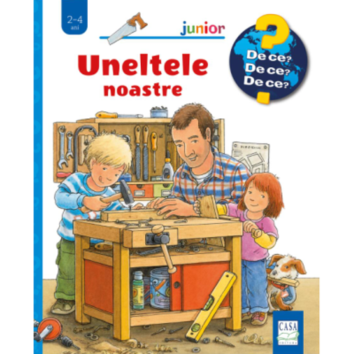 Frumos ilustrata, cartea Uneltele noastre din seria De ce? De ce? De ce? junior, cu ferestre explicative, cu texte scurte si explicite, isi propune sa ii familiarizeze pe micii cititori cu cele mai populare unelte, aratandu-le si cum se folosesc ele. Frunzarind cartea, copiii afla raspunsuri la intrebari ca: De ce avem nevoie de unelte? Ce poti face cu un fierastrau? Cum se netezeste lemnul? Cum se gaureste lemnul? Cartea Uneltele noastre ii va cuceri cu siguranta pe copiii carora le place sa mestereasca alaturi de parintii lor.