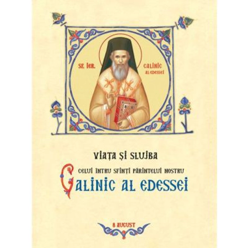 Viata si slujba celui intru Sfinti Parintelui nostru Calinic al Edessei – praznuit pe 8 august Cartea contine viata Sfantului Calinic al Edessei, scrisa de Mitropolitul Ierótheos al Nafpáktei si Sfantului Vlasie, slujba si Paraclisul pe metrica (text si partitura) alcatuite de Inaltpreasfintitul Ioil, Mitropolitul Edéssei, Péllei si Almopíei si tradusa in romaneste cu acrivia podobiei de Sabin cantaretul, la anul mantuirii 2021.