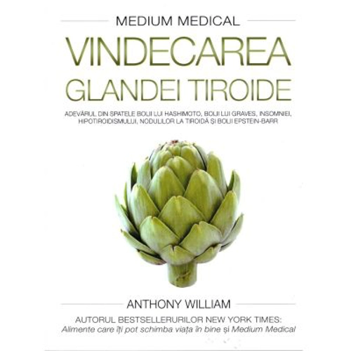 Glanda tiroida este ultimul subiect la moda in domeniul sanatatii. De la batrani la adultii in putere, ba chiar si la copii, din ce in ce mai multi oameni – indeosebi femeile – aud ca principalul motiv pentru care se simt obositi, se ingrasa, sufera de o stare de confuzie mentala, de pierderi ale memoriei, de dureri, amorteli si furnicaturi, de insomnie, caderea parului, bufeuri de caldura, sensibilitate la frig, constipatie, balonare, anxietate, depresie, palpitatii cardiace, pierderea libidoului, agitatia picioarelor etc. – este tiroida. In consecinta, toata lumea doreste sa afle cum poate scapa din aceasta capcana a unei tiroide dezechilibrate. Desi oamenii de stiinta si medicii au inceput sa acorde o atentie din ce in ce mai mare glandei tiroide, aceste simptome nu au disparut, iar bolnavii nu se vindeca de ele. Simpla diagnosticare a unui bolnav cu „boala lui Hashimoto”, „hipotiroidism” sau un alt nume sofisticat de acest fel nu explica nicicum miriadele de probleme de sanatate pe care le experimenteaza pacientul. Explicatia are de-a face cu un adevar fundamental care ramane neobservat: problemele glandei tiroide nu reprezinta cauza ultima a problemelor de sanatate de care sufera oamenii. O tiroida dezechilibrata este doar un simptom in plus al unei probleme mult mai mari decat cea care afecteaza micuta glanda de la nivelul gatului. Adevarata cauza este mult mai invaziva, afectand intregul corp si fiind responsabila pentru intreaga gama de simptome si afectiuni atribuite imbolnavirii glandei tiroide. In cartea Medium Medical: Vindecarea glandei tiroide, Anthony William – Mediumul Medical – ne reveleaza o perspectiva complet diferita asupra epidemiei actuale de boli ale tiroidei. Incurajandu-si cititorii sa devina propriii lor experti in domeniul tiroidei, el le explica in detaliu cauza reala a problemelor lor de sanatate, inclusiv a tuturor inflamatiilor, bolilor autoimune si a zeci de alte simptome si afectiuni, dupa care le ofera o trusa de prim ajutor care le poate schimba intreaga viata, ajutandu-i sa isi vindece glanda tiroida si sa isi recapete sanatatea si vitalitatea. Abordarea lui difera de toate celelalte si asa cum iti pot confirma deja milioane de fani si de adepti care il urmeaza – este o abordare care da rezultate foarte bune. Anthony William s-a nascut cu capacitatea unica de a conversa cu un spirit aflat pe un nivel foarte inalt de constiinta, care ii transmite informatii uluitor de corecte legate de sanatate, ce depasesc cu mult nivelul cunoasterii din epoca noastra. Inca de la varsta de patru ani, cand si-a socat familia anuntandu-si bunica (ce nu manifesta inca niciun simptom) ca avea cancer la plamani (lucru confirmat ulterior de testele medicale), Anthony si-a folosit harul pentru a „citi” starea de sanatate a oamenilor si pentru a le spune cum sa isi redobandeasca starea de sanatate. Precizia sa fara precedent si rata succesului in vindecarile sale i-au atras lui Anthony iubirea si increderea a mii de oameni din intreaga lume, inclusiv a multor vedete de cinema, de rock, a unor miliardari, sportivi renumiti, autori de bestselleruri si nenumarati alti oameni din toate domeniile vietii, care nu s-au putut vindeca decat dupa ce au primit recomandarile sale si ale Spiritului. Anthony le ofera de asemenea un ajutor nepretuit multor medici care nu stiu cum sa rezolve altfel cazurile lor cele mai dificile.